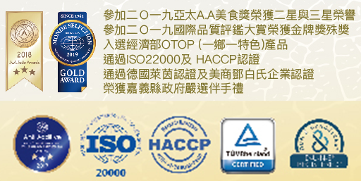 【受賞】モンドセレクション2019金賞、台湾の嘉義県政府のお土産大賞、台湾経済部の地方活性化プロジェクト商品入選