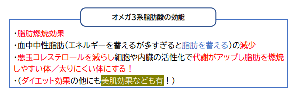 実は脂質には色々な種類があるのですが、その中でも「オメガ3系脂肪酸」というものは、ダイエットの助けをする働きをすることが近年、研究でわかったのです!