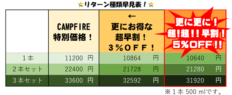 ※価格は消費税・送料込みの料金です。ただし北海道・沖縄・離島等は追加送料をご負担頂きます。料金につきましては分かり次第発表いたしますので対象地域で支援ご検討の方はいましばらくお待ち下さい。お届けの際にお客様の住所誤記載、長期不在等により再配送になった場合は送料をご負担頂きますので住所のご入力時ご注意ください。※頂いた支援金は椿油を輸入する際の費用・お送りするの際の費用に使用させて頂きます。※売上金からCAMPFIRE手数料が引かれます。