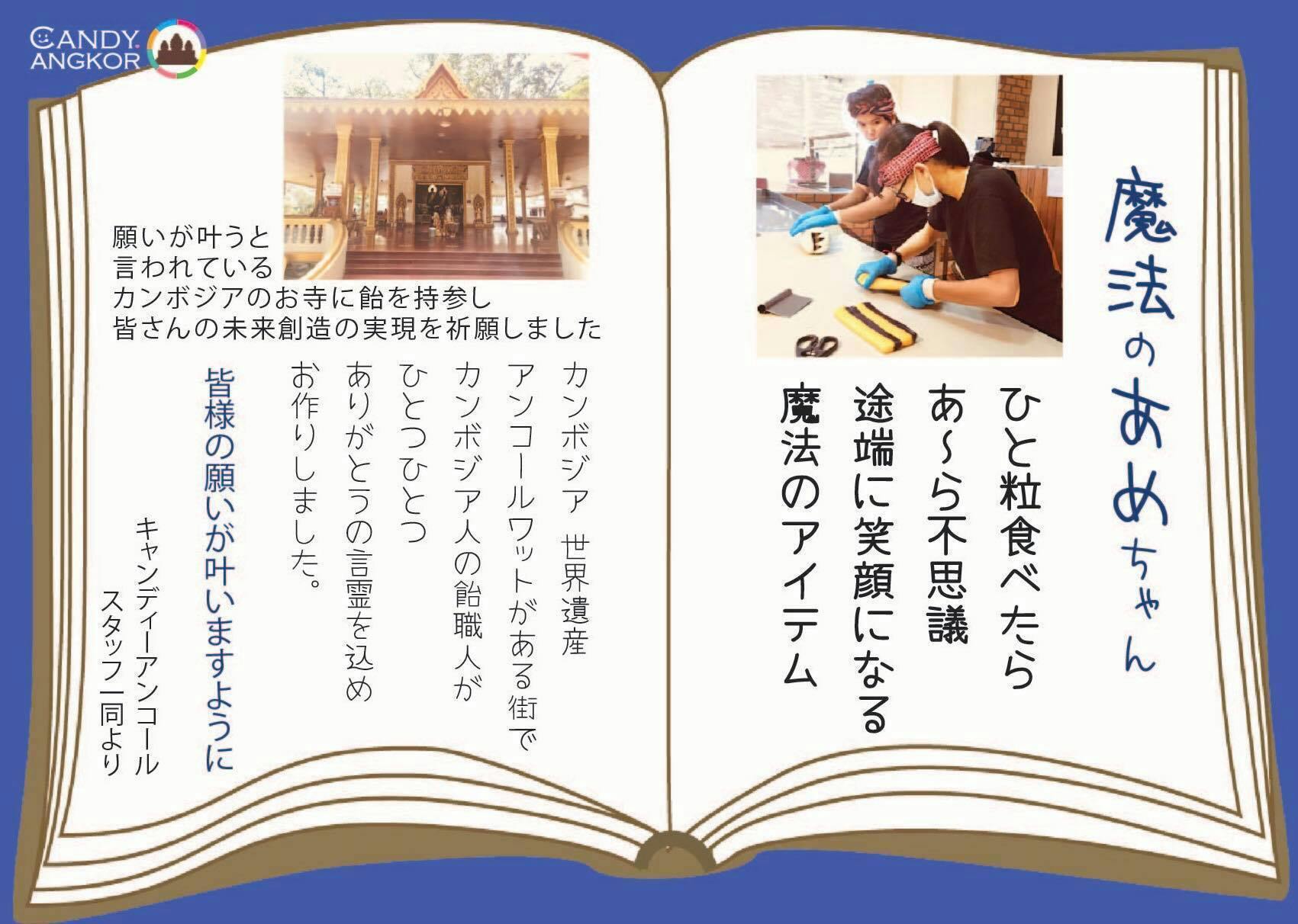 カンボジアの若者たちのビジネスの自立をサポート。 現在、〝ありがとう〟の言霊を込め作る【魔法の飴ちゃん】が人気。