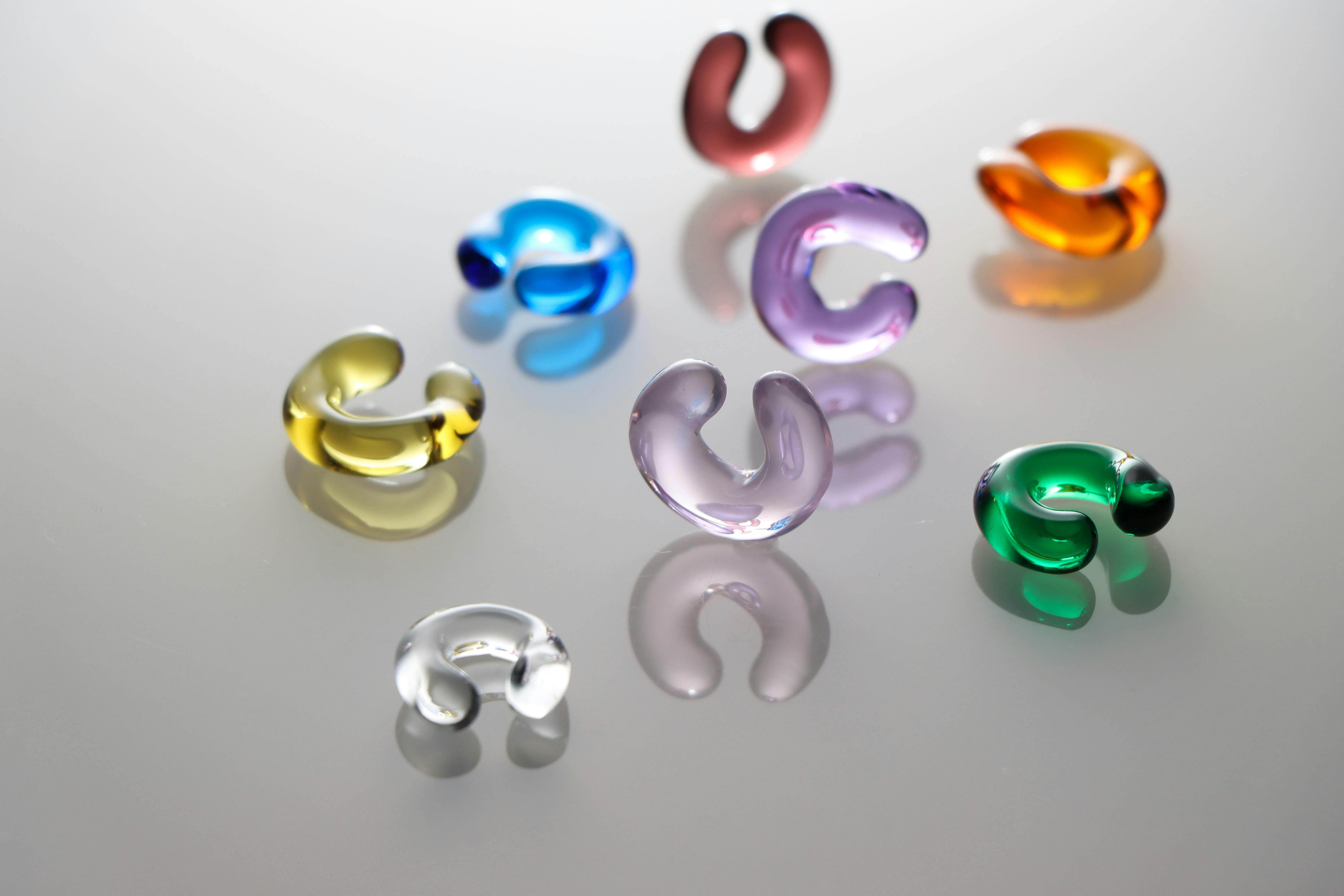 さらにご支援いただいた方にはこちらのリングとあわせてガラスのイヤーカフをもれなくお付けいたします。(色はランダムになります)