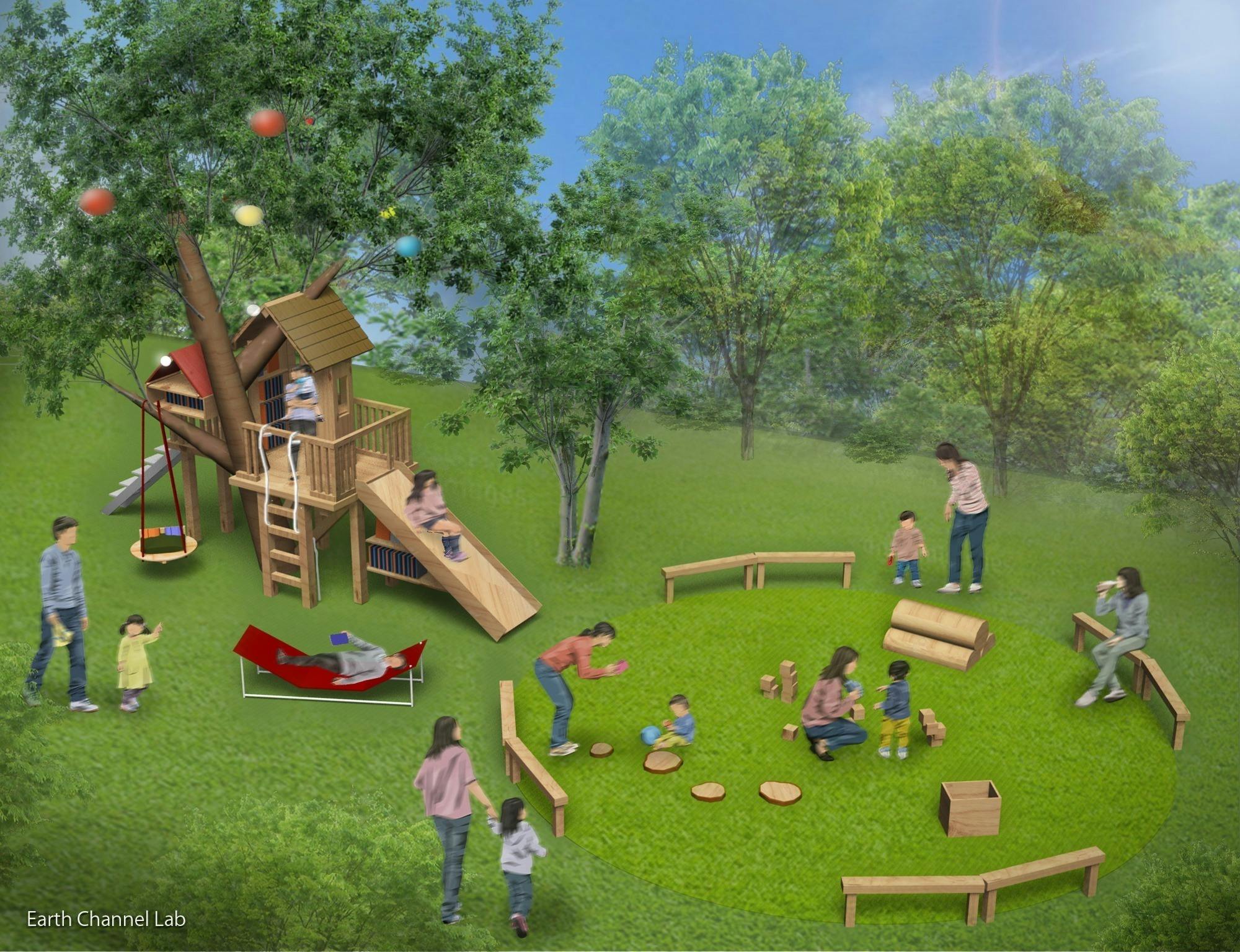 ツリーハウスの下には公園を作り、子供たちが遊ぶ様子を見守りながら、木の上やブランコで読書が出来るような環境づくりが目標です。