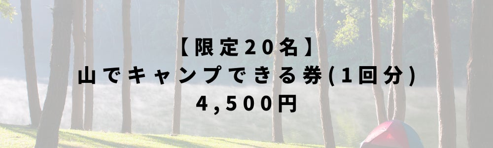 計1回、山でキャンプが出来ます。山の中のお気に入りの場所をご自由にお選びください