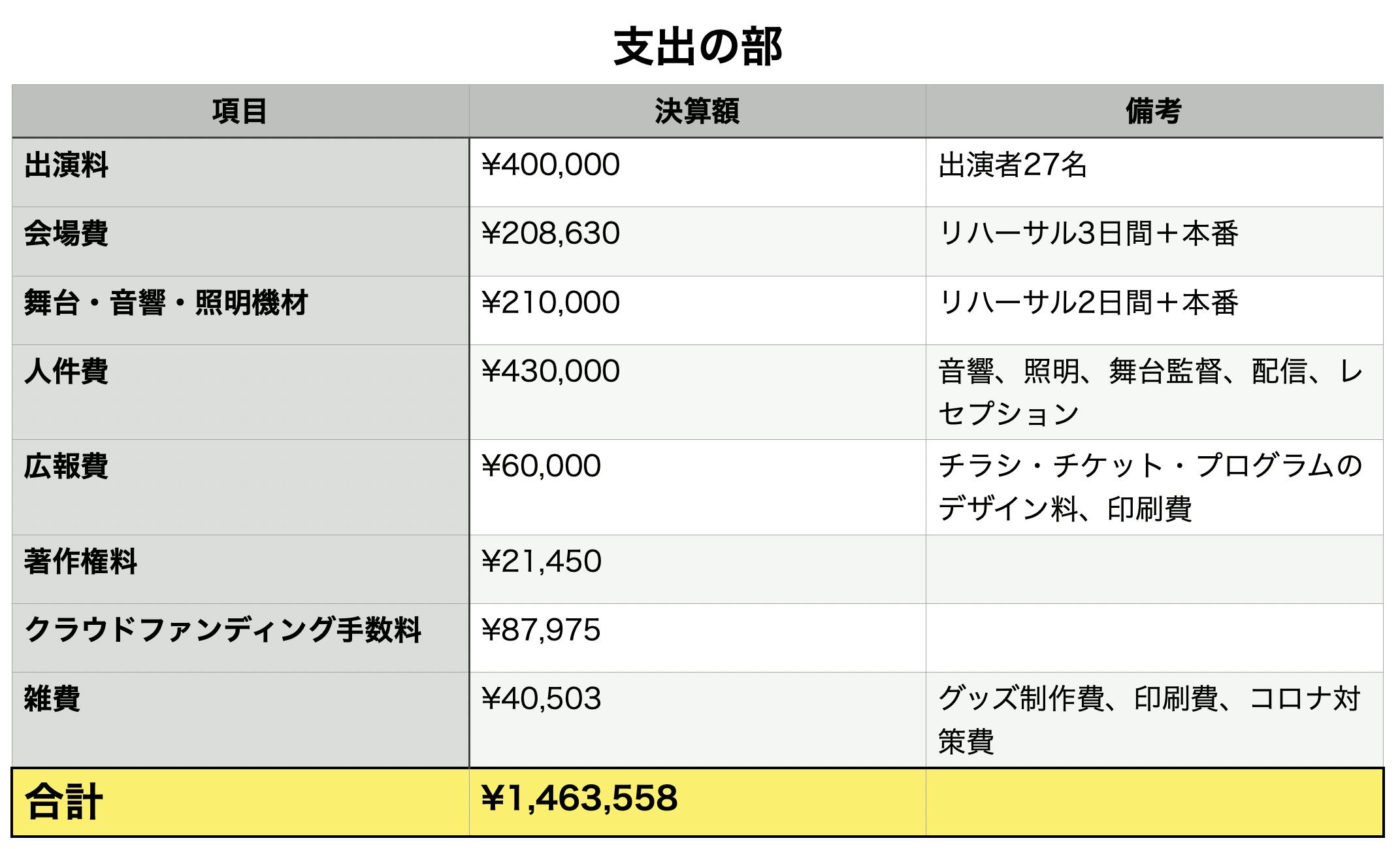また公演を主催するにあたり、音楽を仕事にしたい・音楽で生きていきたいと思っている公演に関わる全ての人に対して、出演料を支払う必要があります。