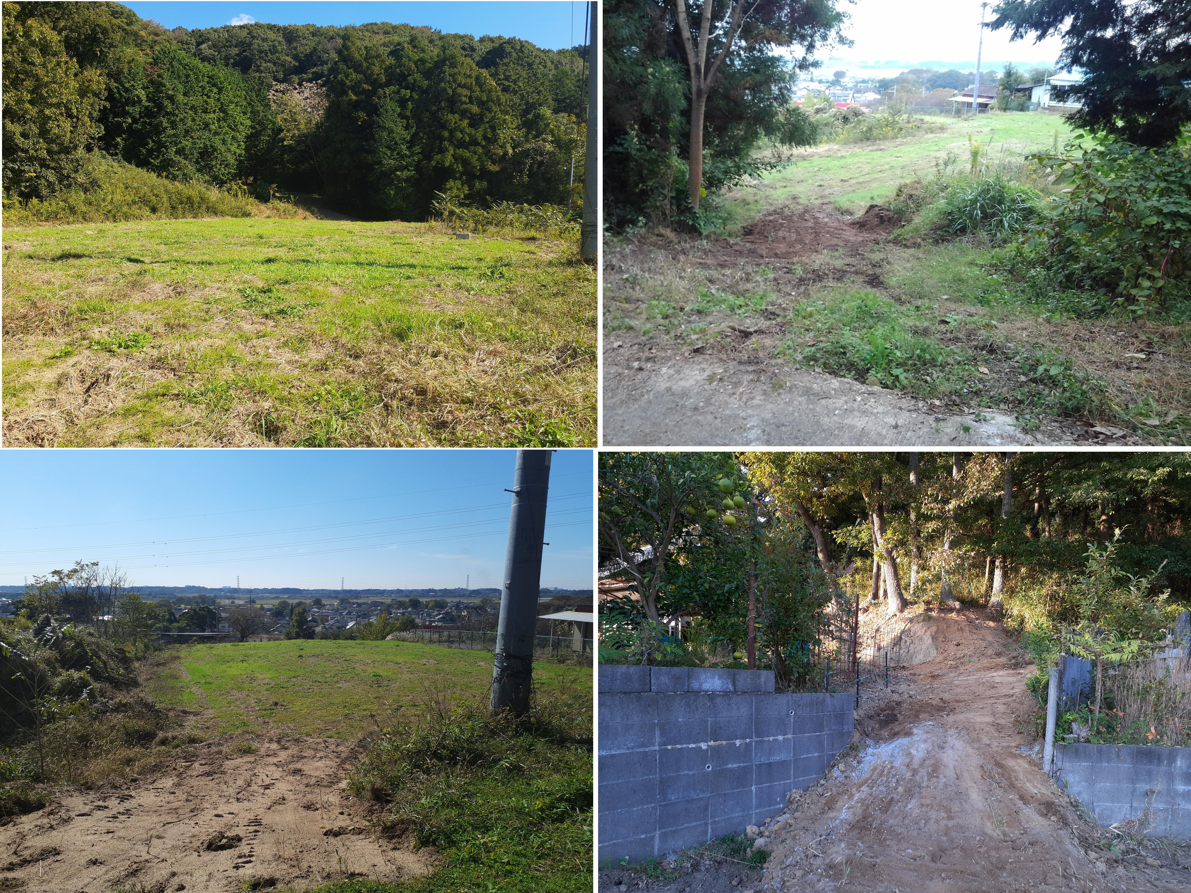 小田城コース入口のキャンプ場予定地は、約700坪あります。現在は夏の間に背丈以上に伸びた雑草を除草して、キャンプ場入口のアプローチと登山道に続く道を整備しています。今後、天地返しをしてさらに整地をすすめて、木製の外柵を設置する予定です。