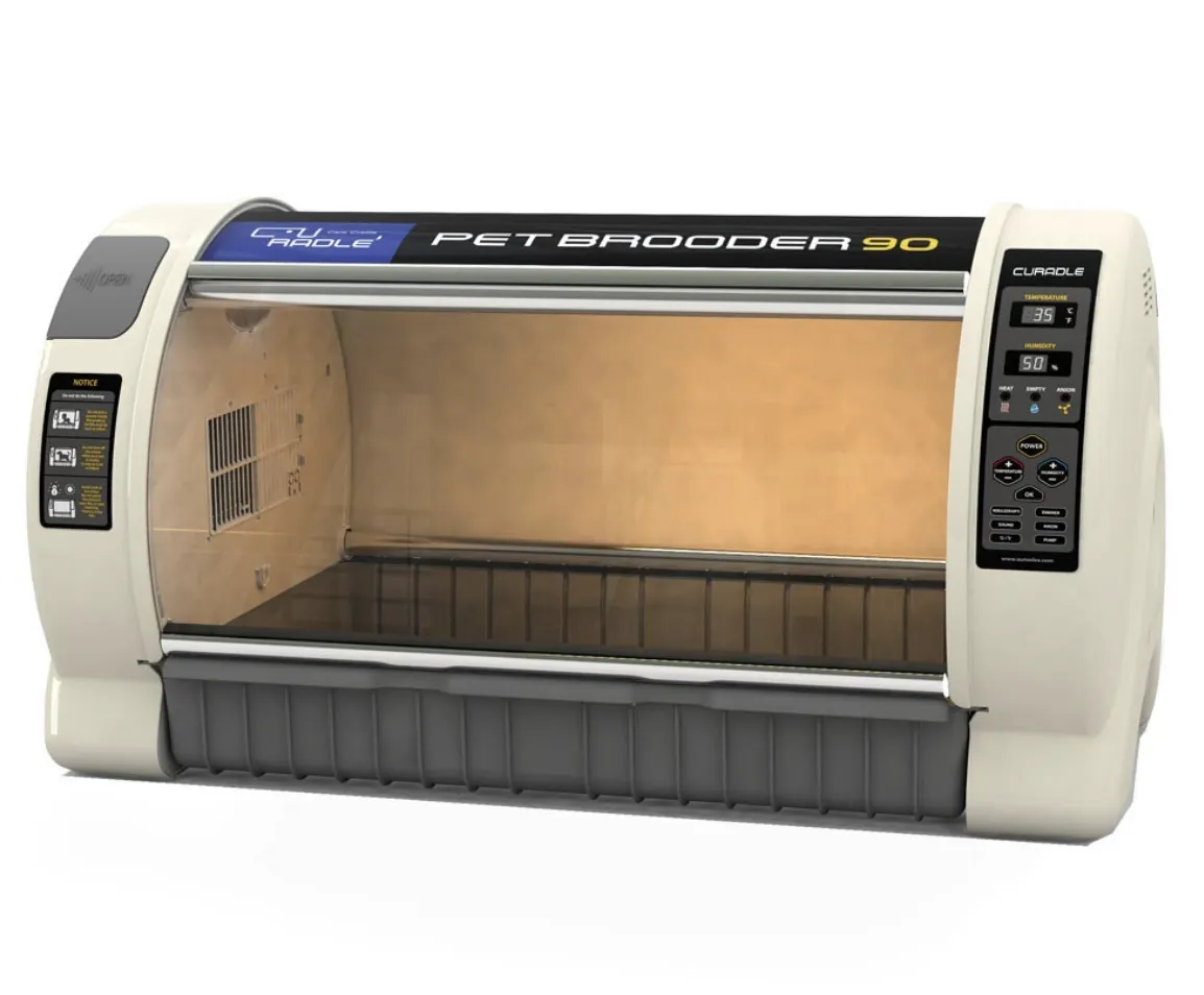 こちらは温度、湿度の管理ができる保育器で、自分で体温調節のできない子猫を最適の温度、湿度下で保護できる装置です。子猫は複数匹入れることができる大きめのものとなります。