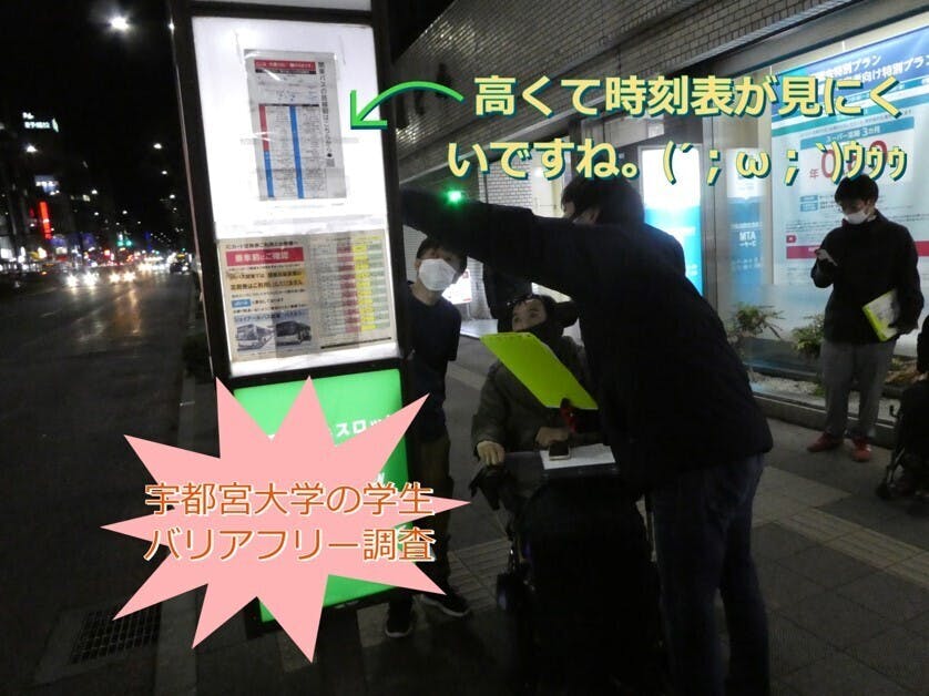 宇都宮大学の学生さんと夜のバリアフリー調査