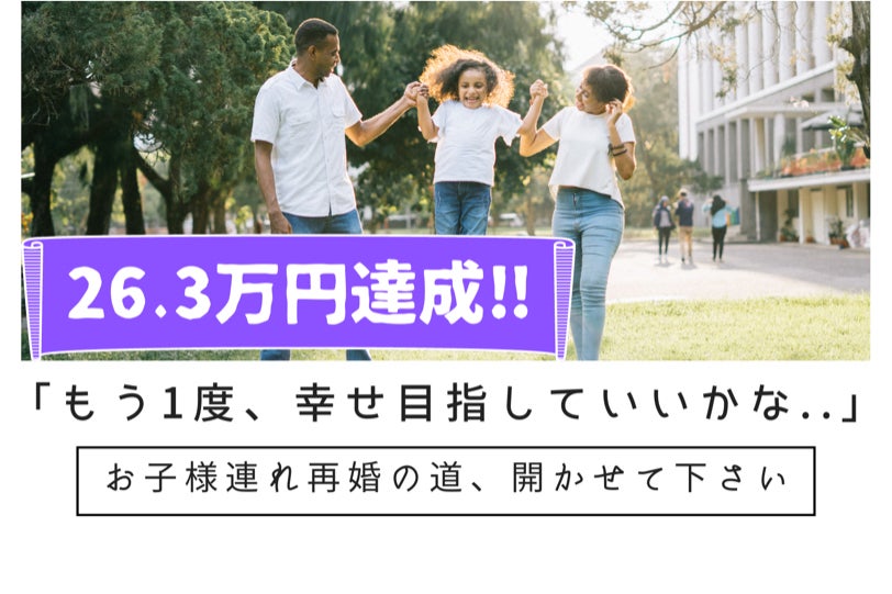 2022/11/25 14:43【25万円到達しました!残り4日です!】11月3日より約一か月間続けて参りました【一人親家庭を二人親家庭へ。お子様連れ再婚(シングルマザー)支援プロジェクト】ですが、おかげさまでご支援金が258,000円まで到達いたしました!皆様、本当にありがとうございます!目標80万円に達する事は難しい現状ではありますが、当初、ここまで多くの方々にご支援いただけるとは正直思っておりませんでした。少子化、過疎化、生涯未婚率増加・・、様々な社会問題とぶち当たるこれからの世の中、今回私たちが着目したシングルマザーの方への婚活ご支援というテーマと今後も向かい合い、一人でも多くの方の幸せのお手伝いが出来ればと益々意気込んでおります。プロジェクト終了まであと4日。最後まで頑張って参ります。改めてサイトはこちらからご覧ください。https://camp-fire.jp/projects/view/518383引き続き、ご支援及びご引き立ての程よろしくお願いいたします。。 もっと見る中間報告
