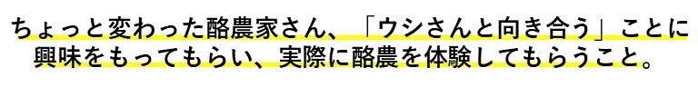 「一人ひとり、牛一頭一頭が違う。それを皆に感じてほしい。牛と向き合ったときの感情や思考がみんな違う。・・そんな色々な考えを吸収して、協力して新しい何かを生み出していく、そんな場も作りたい。