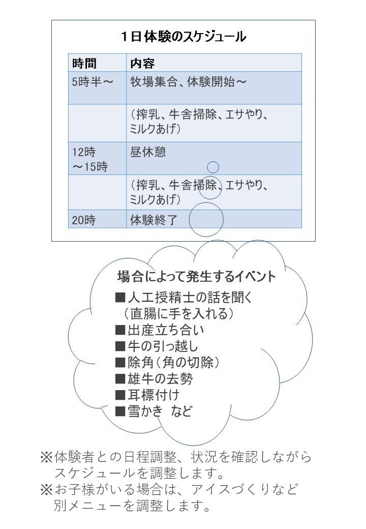 ・2021年2月下旬~5月:酪農体験提供(3人グループ2組/月で実施予定)