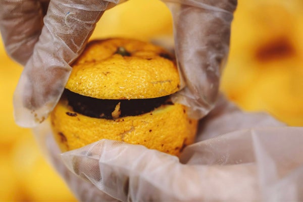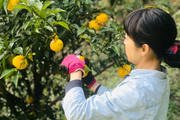 ▼古民家の側に広がる畑で、無農薬で育てられた柚子を11月ごろに収穫します。