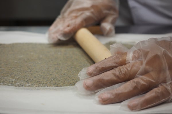 ▼薄く伸ばし、低温で40分程ゆっくり焼き上げるのでサクッと軽い食感のクッキーになります。