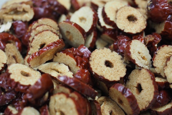 ▼ナツメを5㎜に一つずつスライスし、蒸して甘さを引き出してから、低温長時間でサクッと焼き上げます。