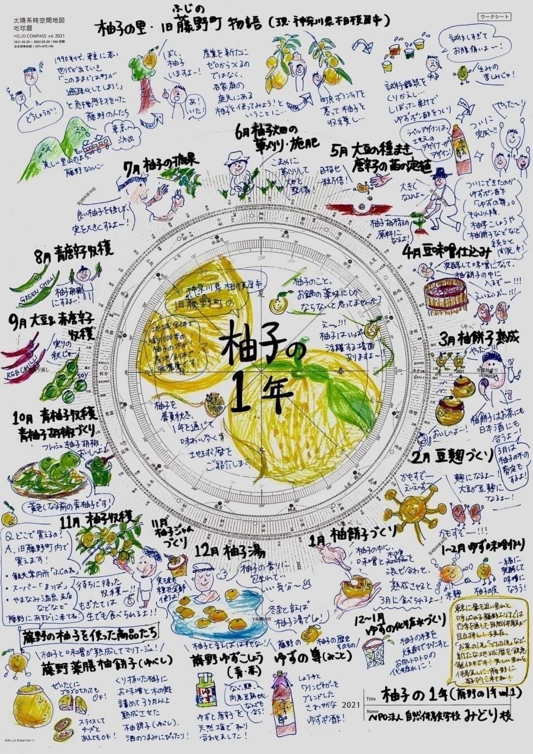 みなさんは地球暦をご存知ですか。地球暦とは、太陽を中心にした地球の一年の動きを見ることができる暦であり、時空間の地図のことです。この地球暦をひな形にして、柚子の1年を書き込んだ柚子×地球暦を作りました!