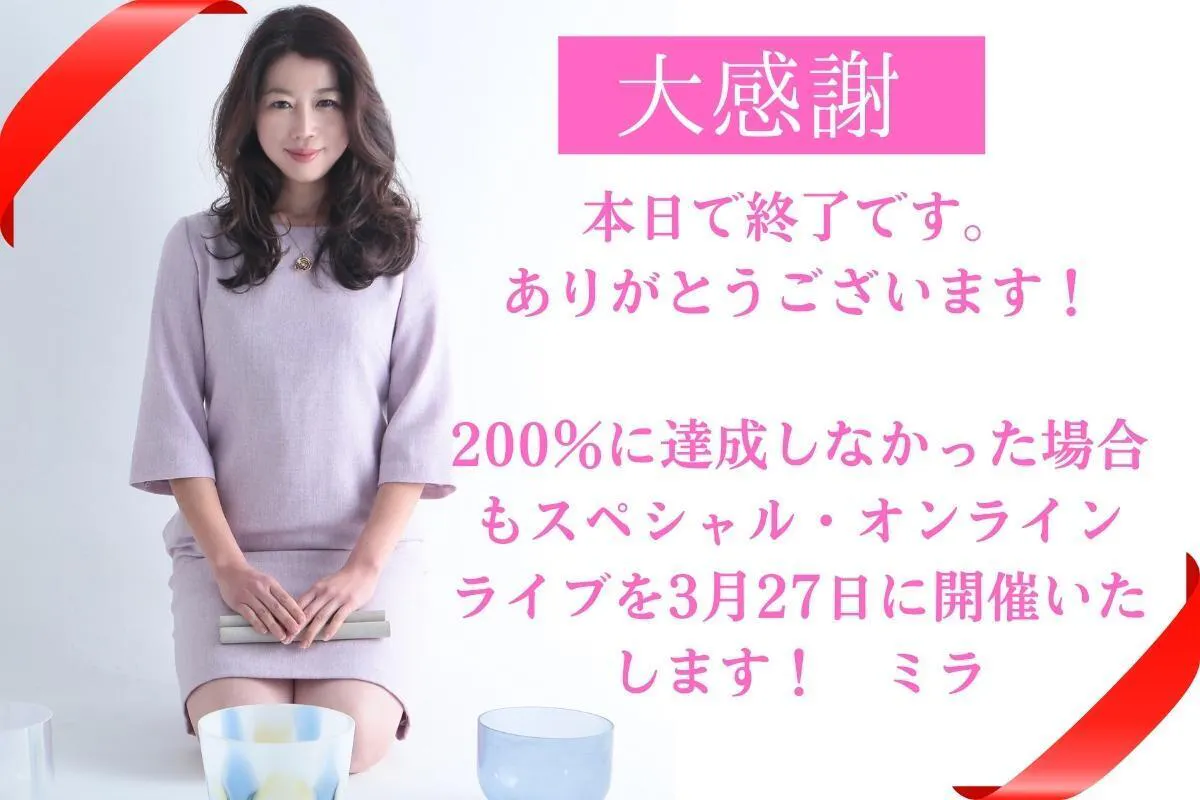 「目標金額の200%達成しましたら、更に、スペシャル オンライン ライブを開催いたします!