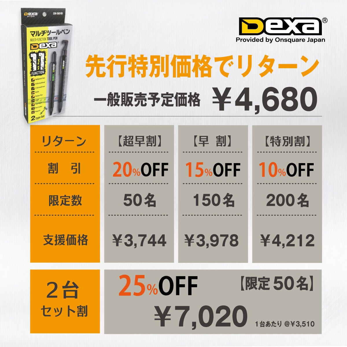 2021/12/17 11:18みなさま、こんにちは。『マルチツールペン』のプロジェクト終了まで、残すところ12時間となりました。ここまでに、100名を超える皆様にご支援いただき、最終的には目標金額に対して300%を達成できそうです。ご支援いただきました皆様、本当にありがとうございます!また、迷っておられる方がおられましたら、ぜひご支援をお願いいたします。プロジェクト終了後は、年内までにご支援者の皆様のお手元にマルチツールペンをお届けできるよう、発送作業に努めさせていただきますので、引き続き、何卒よろしくお願いいたします。 もっと見る目標金額に到達することができました!