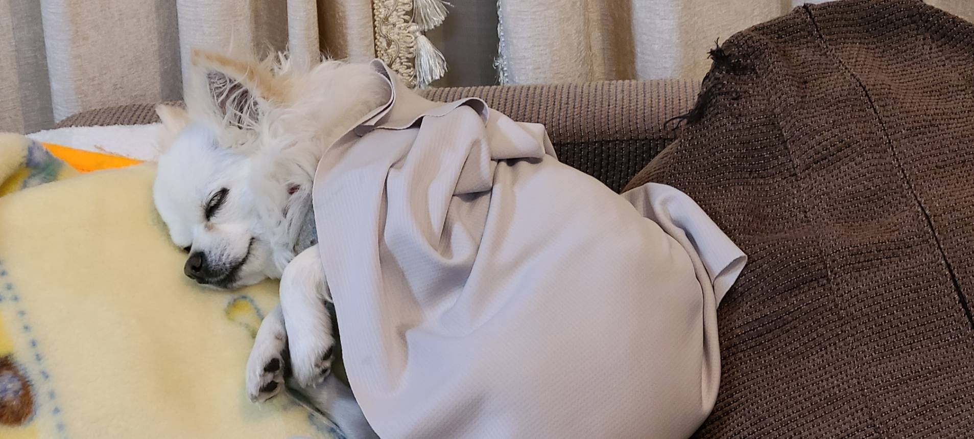 15歳を迎え、お散歩の時の足取りもゆっくりになってきたので、試しにドッグストールを購入してみました。巻き始めて1週間くらいすると足取りも軽くなり同じお散歩コースでも時間が短縮できるようになりました。また、ここ数か月はお腹を上にして寝ることがなかったのですが、お腹を上にして寝るようになりました。そして、毎年夏頃には肌の状態が良くないことが多かったのですが、今年は一度も気になることなく過ごせています。今年は可哀そうな思いをさせずにすみました。