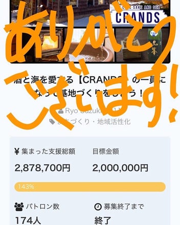 本当に多くの方から支援・応援いただけ、ありがとうございます!