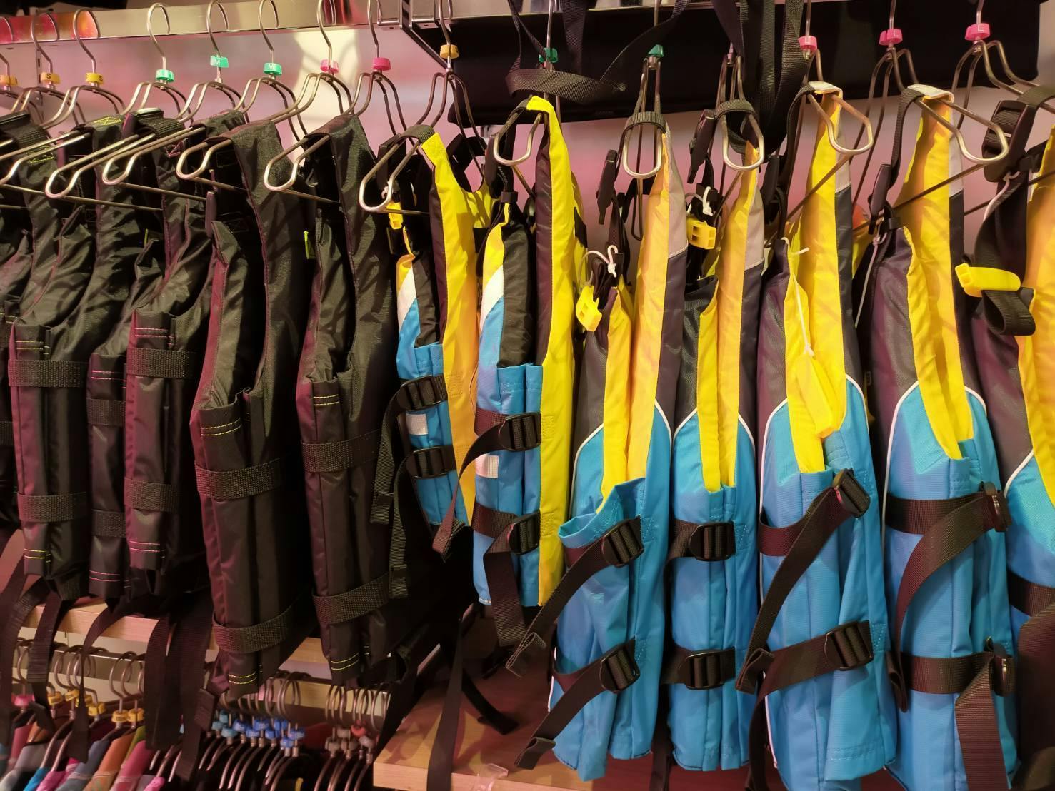 安全設備にはマリンシューズおよび腰に巻く浮力体と上半身に切るライフジャケットタイプをご用意し、泳げない人向けや急な天候の変化に備えます。