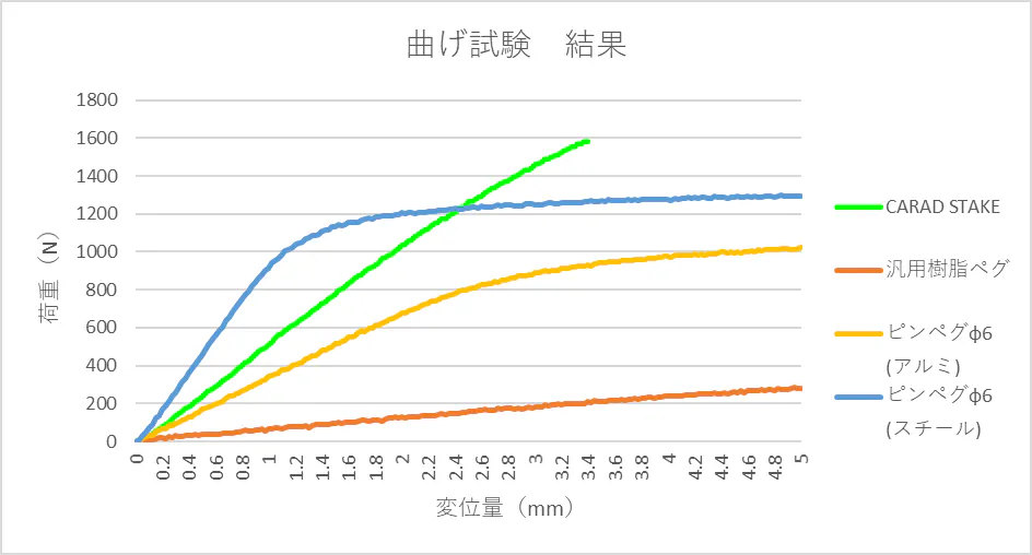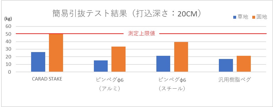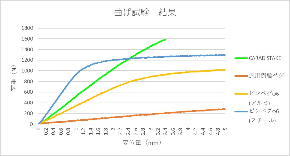 2.高強度 炭素繊維で強化された「CARAD STAKE」 は、プラスチック のイメージを超えます。 固い地面のサイトでも、しっかりと突き刺さります。 曲げ荷重においては、金属製ペグを凌駕しました。