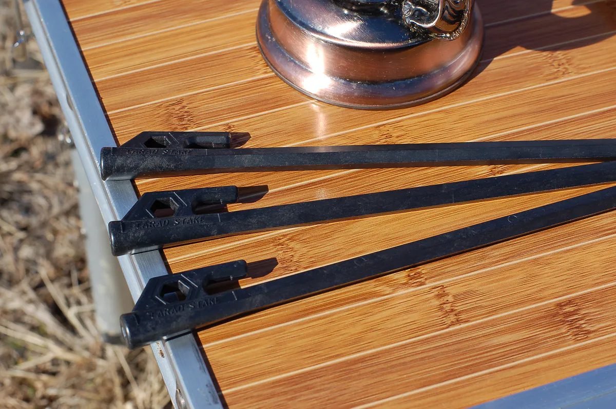 5.抜き易さ 撤収時にペグが固くて抜けない、なんてことは日常茶飯事ですが「CARAD STAKE」は、フック部の六角形穴を使って、ペグ同士で簡単に抜くことができます。もちろん、ペグハンマーを使ってもOKです。