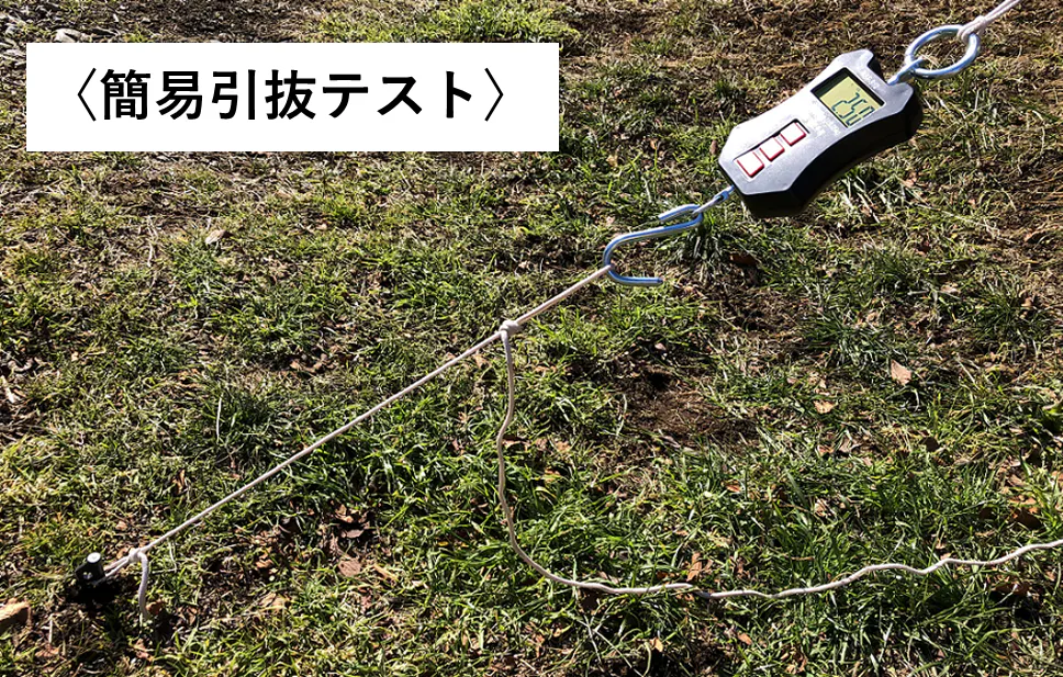 4.固定力の発揮 ペグは、簡単に抜けてしまったら使いモノになりません。「CARAD STAKE」は、固定力と打ち込み時の回転防止を意図して、六角形状にしています。それにより、平面部で地面との接触面積が増えて、十分な固定力を発揮します。