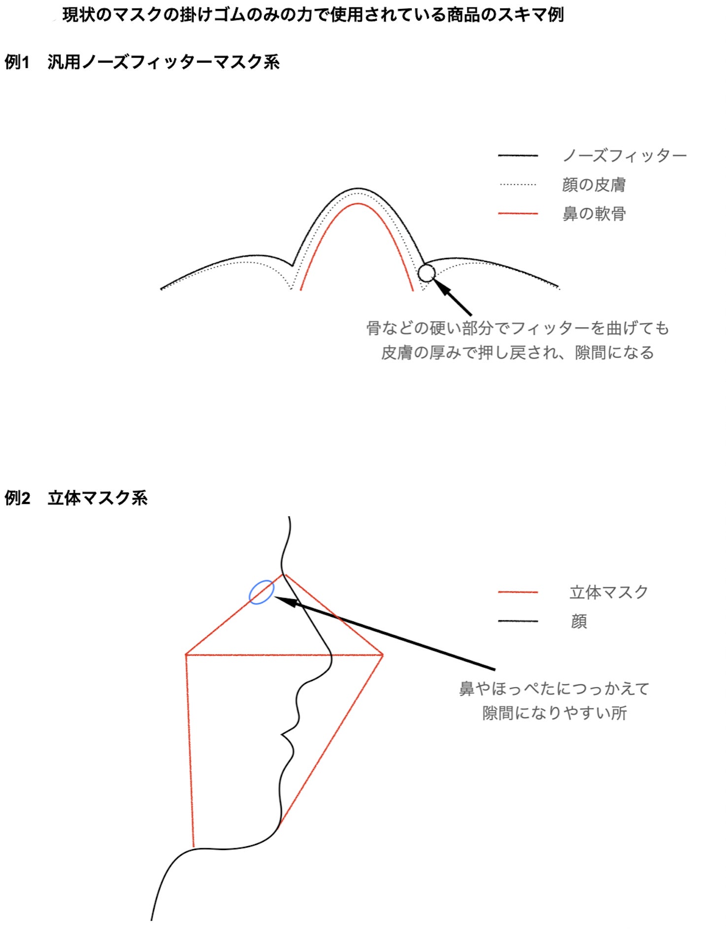 今までのマスクは様々な鼻筋の大きさや高さにスキマなく合わせるのは困難でした