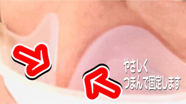 本品をズラしたシーンで鼻に跡がついているのは撮影用の試作品でフチが角張っています。正規製品はフチの丸み加工が施された物になります。