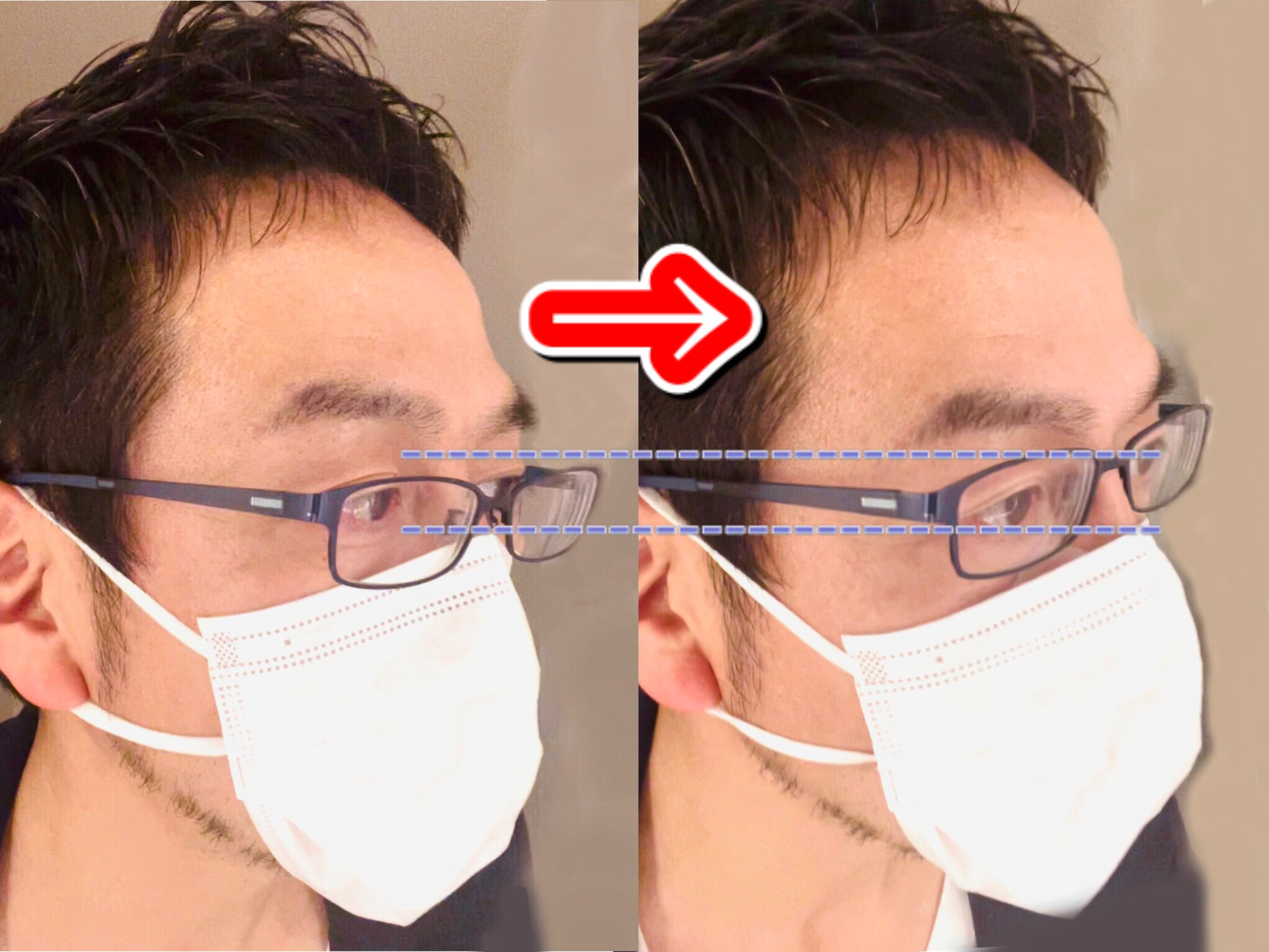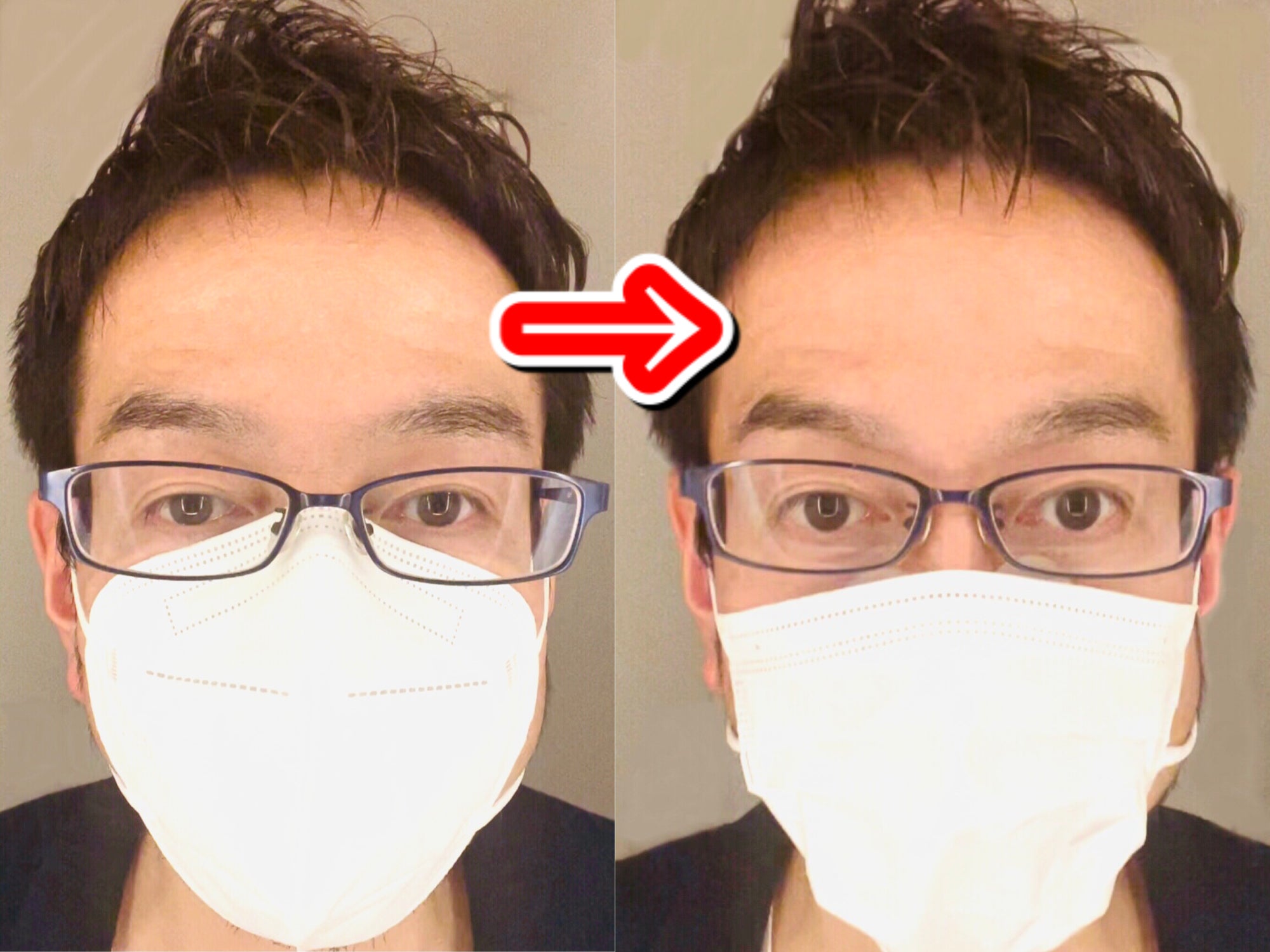 マスクを 目の近くまで寄せて メガネを乗せて曇りを避けていませんか?マスクのせをしなくて良いので、本来のメガネと顔のバランスを損なわない。ビジネスシーンでも、あなたはどちらが印象がよいですか?こういった小さな部分でも、視覚的効果を20パーセント向上できます。