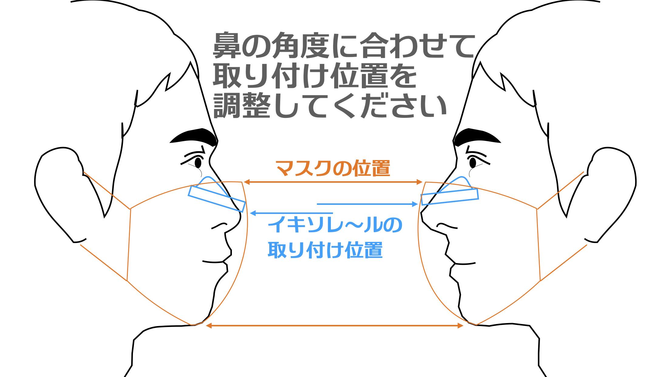 鼻の角度によって、マスクに取り付ける位置が個人差で違いますので、
