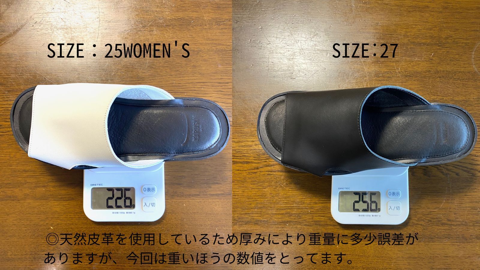 今回のレザーサンダル片足重量は(25WONEN'S:226g・27:256g)となっています。