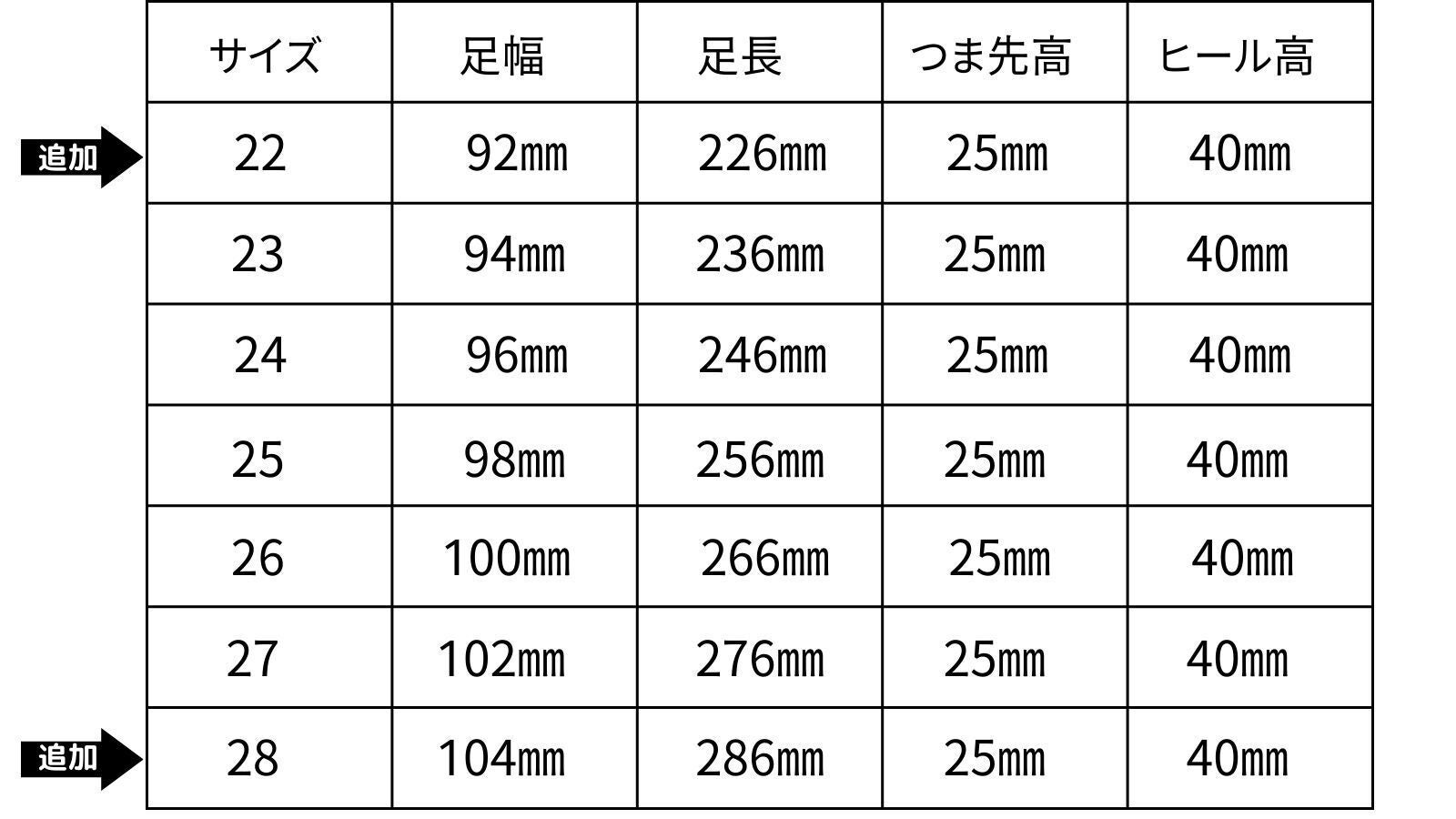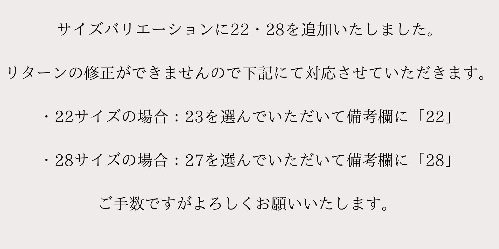 ・28(28cm~28.5cm)←追加の6サイズを用意しています。