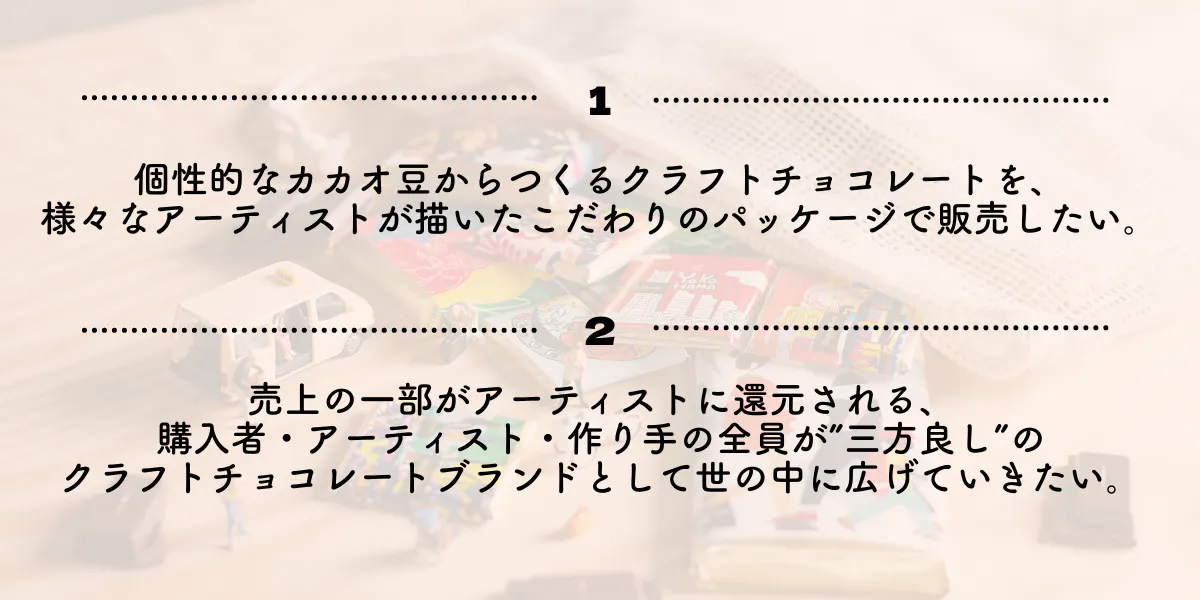 第2回となる本プロジェクトですが、今回もわたしたちショコラミーツが実現したいことは変わりません。
