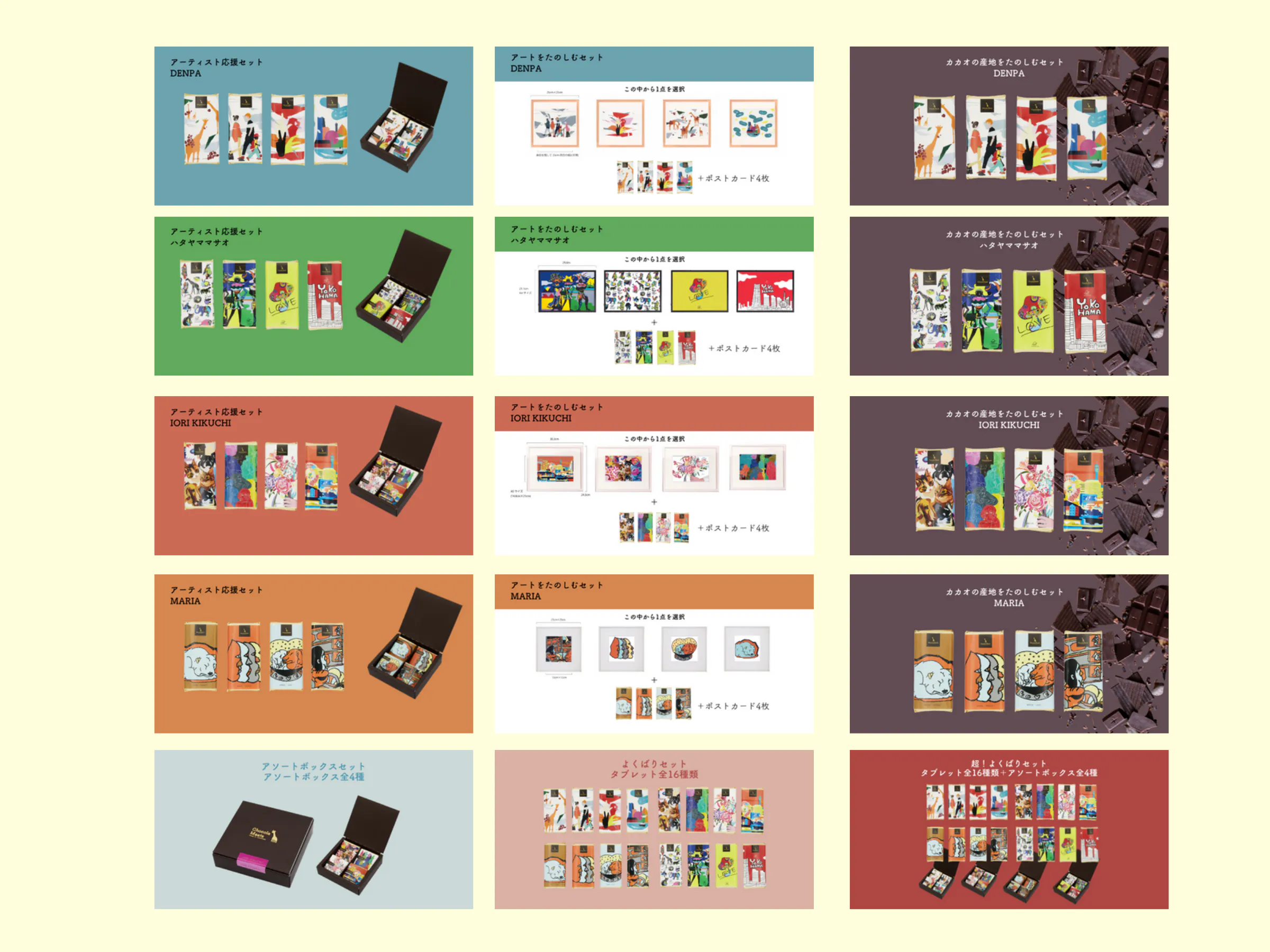 アソートボックスは、アーティストごとに全ての味を楽しんでいただけます!