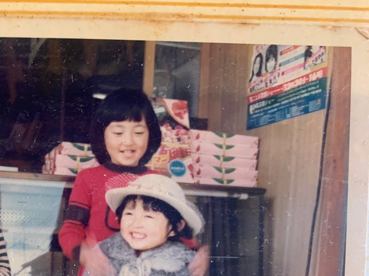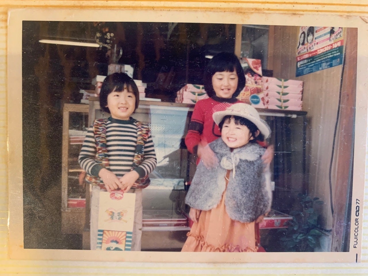 幼いころの私(左)と姉(右上)、そしていとこ(右下)