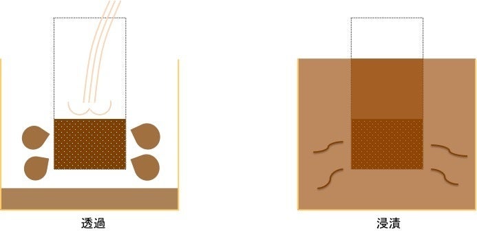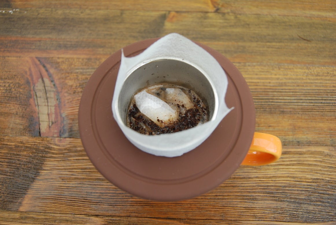 お湯を注ぐ最初の段階で普通のドリッパーと同じようにお湯がコーヒー粉を透過してコーヒーが抽出され、次の段階でフレンチプレスのように浸漬で溶けにくいコーヒー成分が抽出されます。