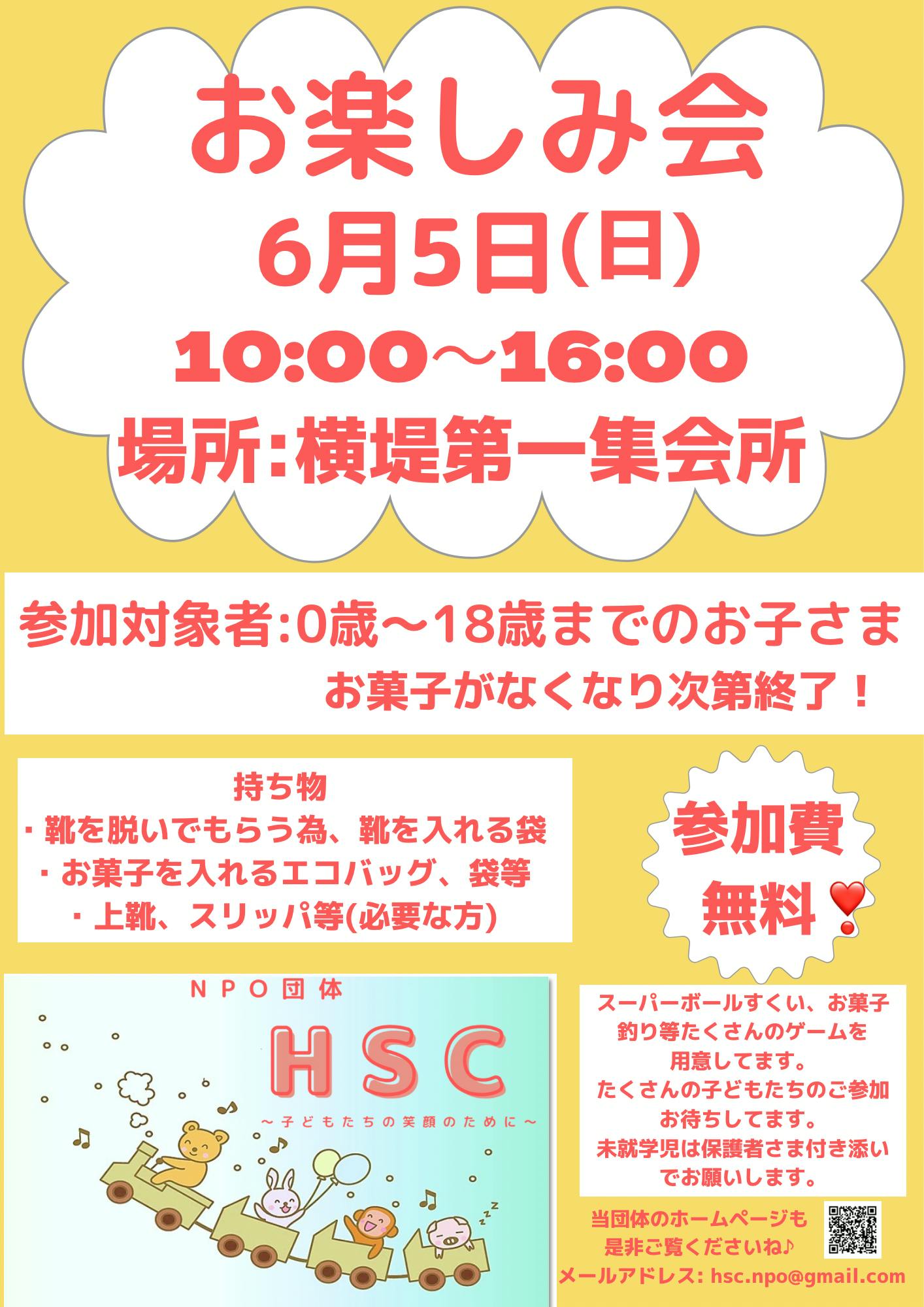 6/5(日)大阪市鶴見区横堤でお子さま対象のお楽しみ会開催します♪