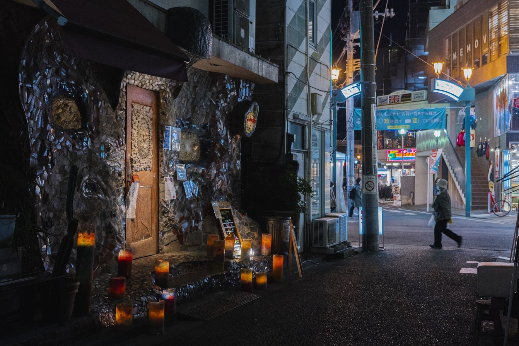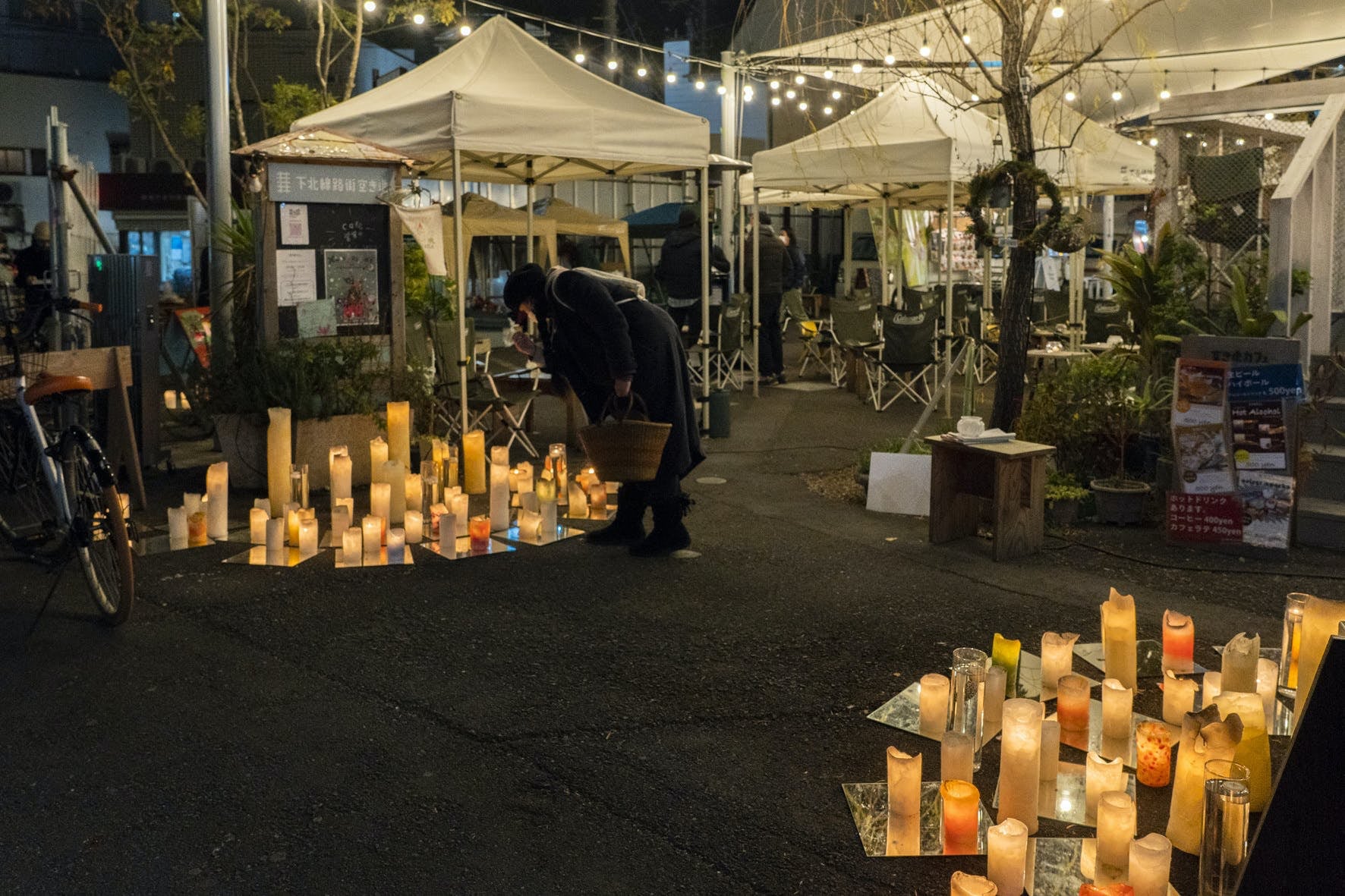 小さな路地とユニークでこだわりある小さなお店の多い下北沢だから、華やかな電飾のイルミネーションより、手作りのあたたかいキャンドルの灯りでもてなす方が合っていそう!