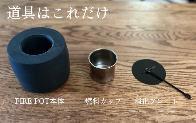 「FIRE POT」は直径12.5㎝、高さ10㎝、重さ1.6㎏とコンパクトサイズのため持ち運びも簡単。
