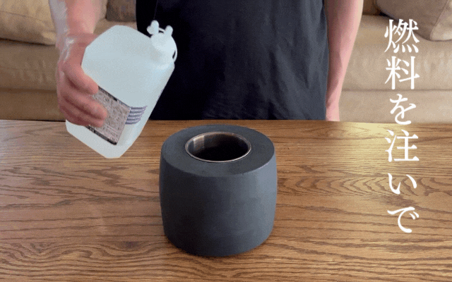 ・燃料カップに1/3ほど注いでいただきライター等で着火してください。