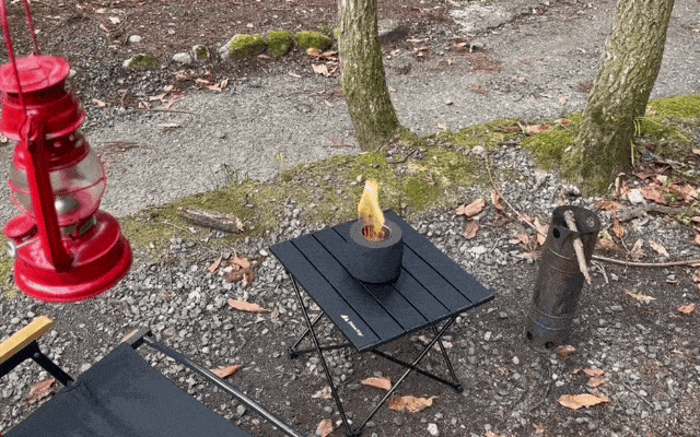 ・燃料カップ1/3ほどで約50分ほど炎が持続します。火が付いてるときは離れないようにご注意ください。