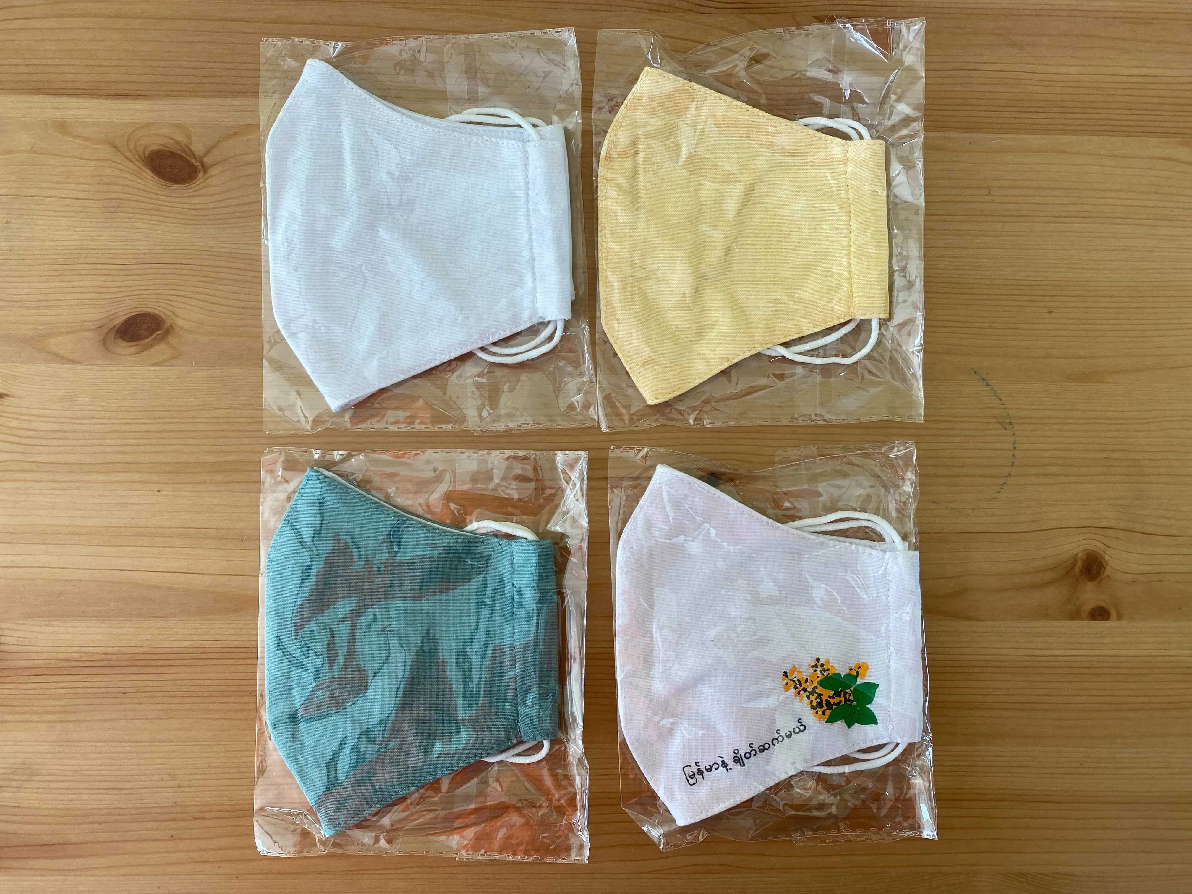 マスクは4種類(グリーン、イエロー、ホワイト、オリジナルデザイン)ご用意しております!