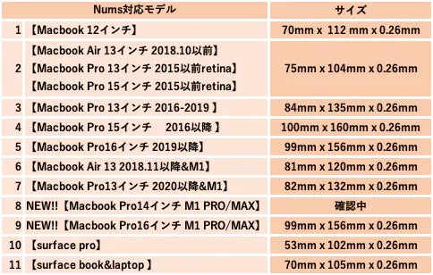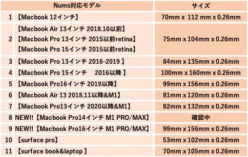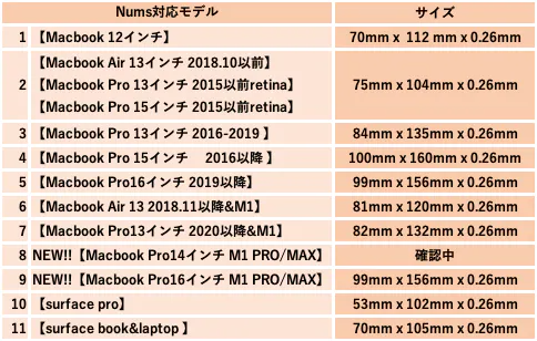 ※ご自身がご利用されているノートPCの機種とNums対応モデルを良くご確認の上、お間違いのないようにご購入ください。機種を間違えてご購入された場合、一度開封された場合は交換できません。また、交換にかかる送料はお客様のご負担になりますので予めご了承ください。