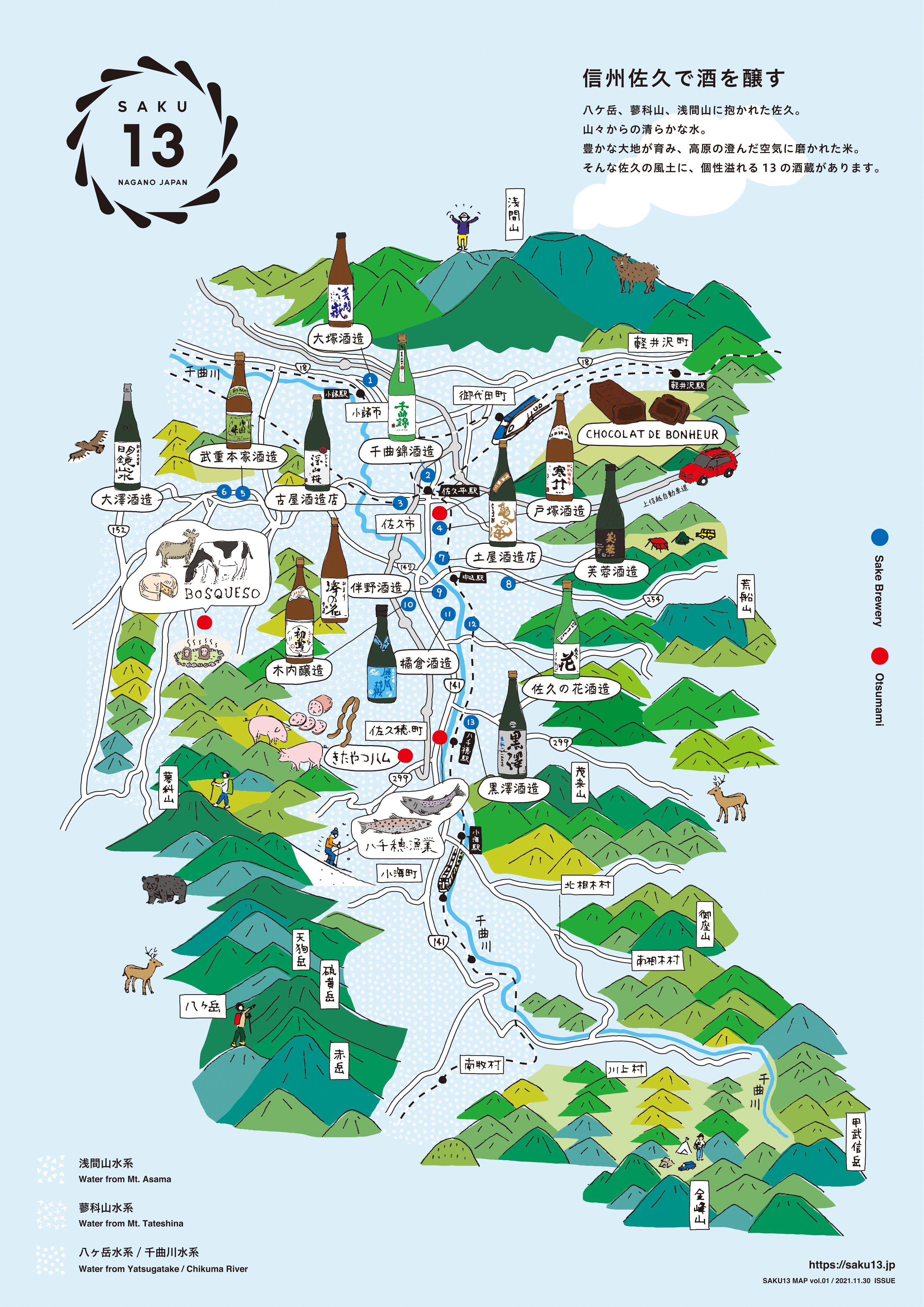 佐久地域の13蔵酒造マップ