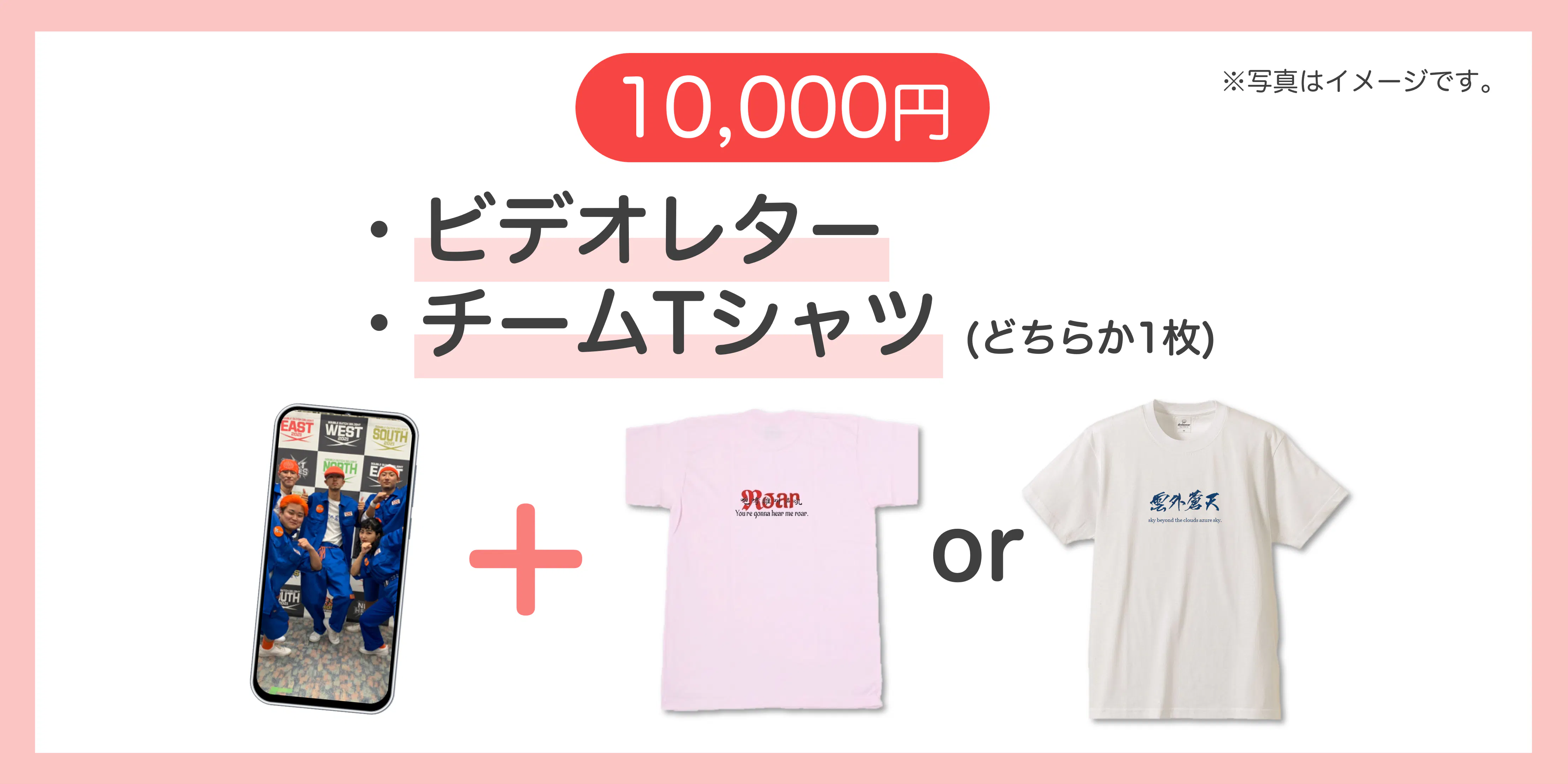 また、チームオリジナルTシャツ(Roar or 雲外蒼天どちらか1枚)をお届け致します。