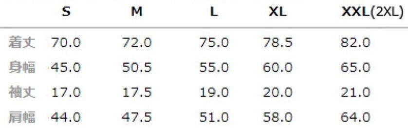 サイズ表(S~2XLまで)