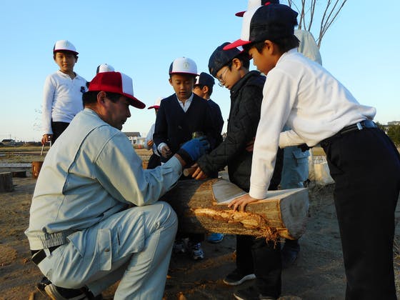 のこぎりで木を切ったり、