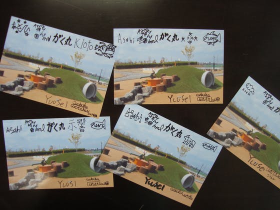 クラウドファンディングのリターン品、こども公園部長直筆サイン入りポストカードが