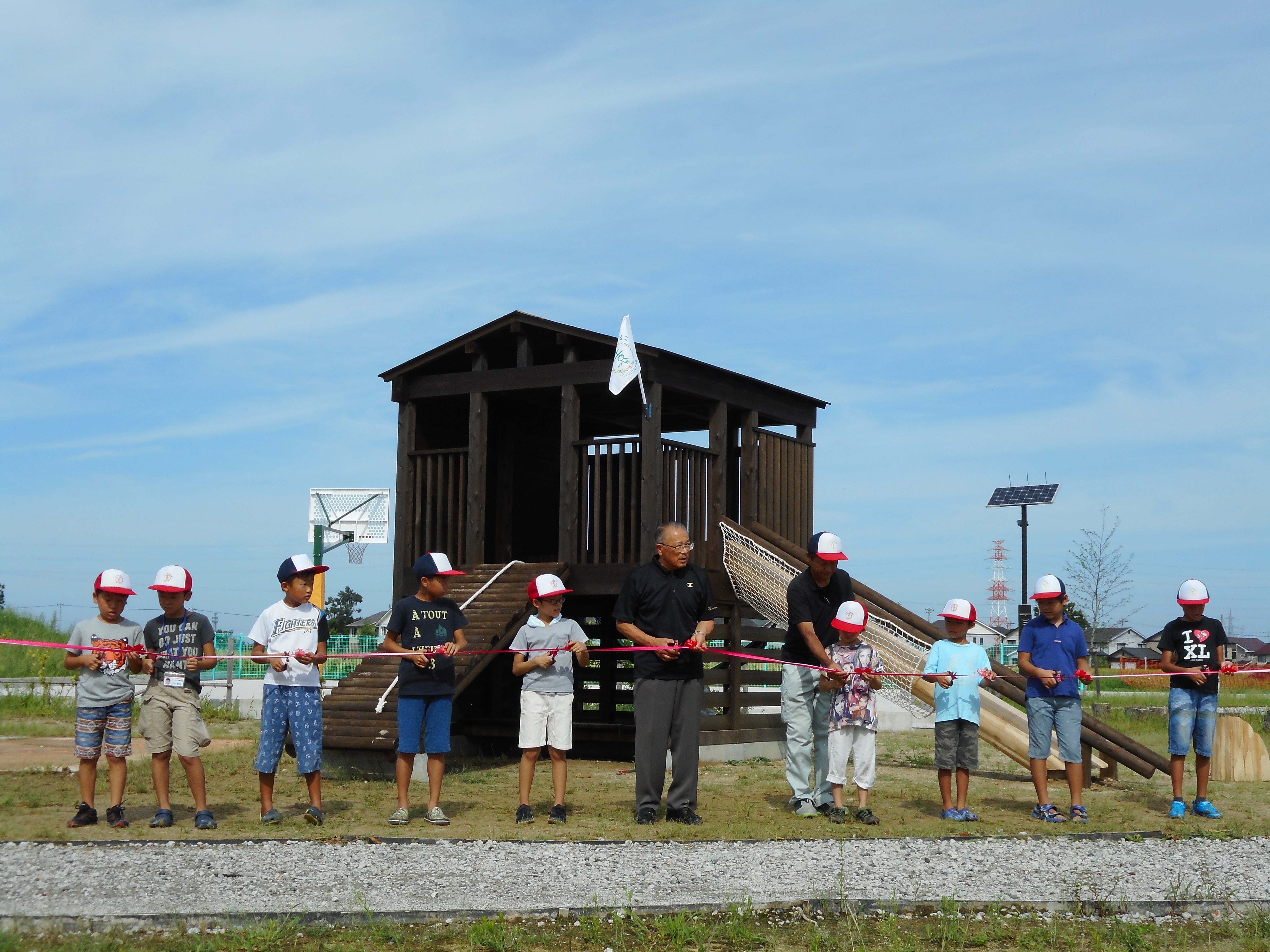 おひろめかいでは、こども公園部長と・・・なんと舟橋村長が一緒にテープカット。
