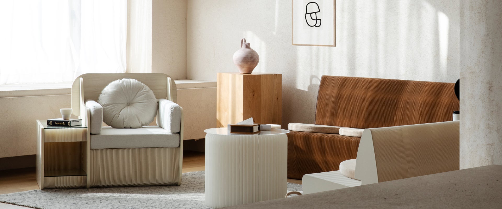 本プロジェクトでは、該当部屋のみ高品質紙製家具で話題の「ih paper」ブランドを採用し、